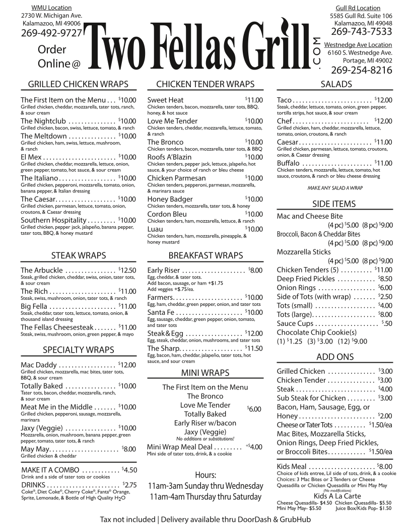 You’ll spot the Two Fellas Grill Menu as soon as you walk into this easygoing spot on S Westnedge Ave in Portage, and it’s the kind of lineup that makes you slow down and actually read every option. The place leans into hearty comfort food, so you’ll find everything from loaded grilled sandwiches to big, messy burgers that hit the table sizzling. And while the portions are generous, the flavors are what stand out - smoky, cheesy, a little indulgent in all the right ways.